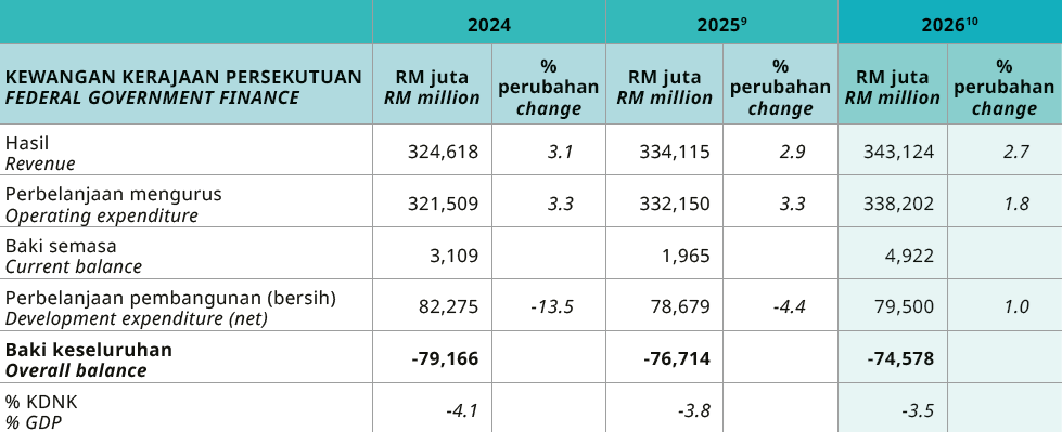 Kerajaan juga mengunjurkan RM343.1 bilion bakal dikutip tahun hadapan, meningkat hanya 2.7% berbanding RM334.1 bilion anggaran pada tahun 2025.