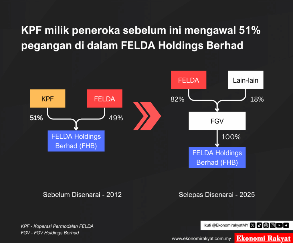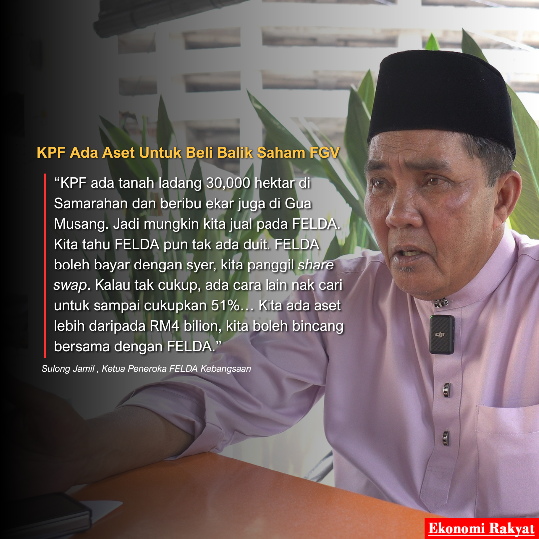 “Kalau semua (pegangan FGV) untuk FELDA maka tak ada apalah untuk peneroka. Saya harap lepas nyahsenarai FGV, kita di KPF ambil 51%. Bayarlah berapa nilai 51% saham itu, FELDA boleh pegang 49%.”