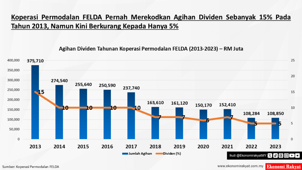 Dari tahun 2021 hingga 2024, FELDA yang menguasai 82% pegangan di dalam FGV menerima lebih RM900 juta dividen daripada FGV.