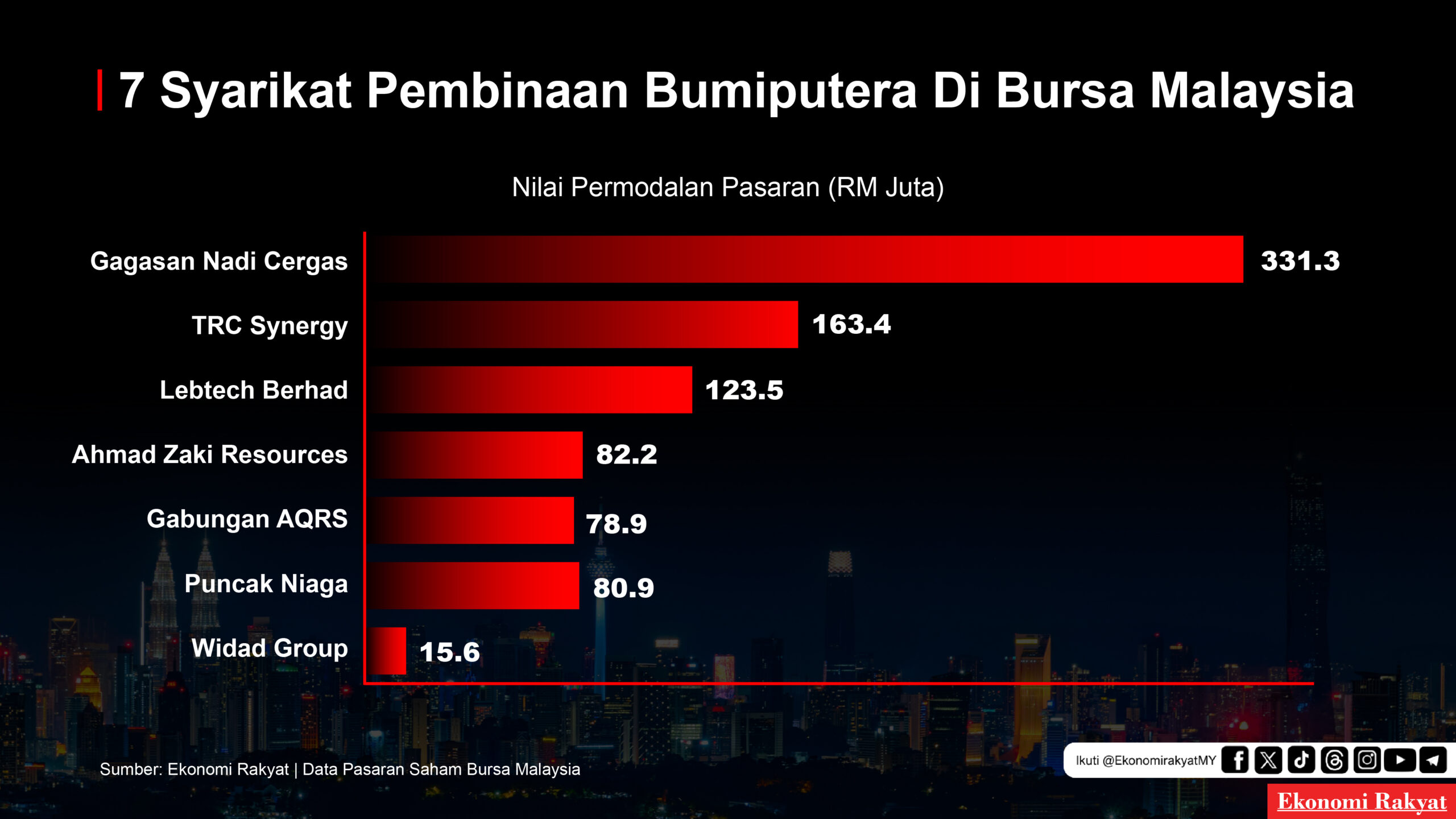 Dari segi permodalan pasaran, syarikat pembinaan milik Bumiputera berada pada skala yang jauh lebih kecil, antara RM16 juta hingga RM331 juta.